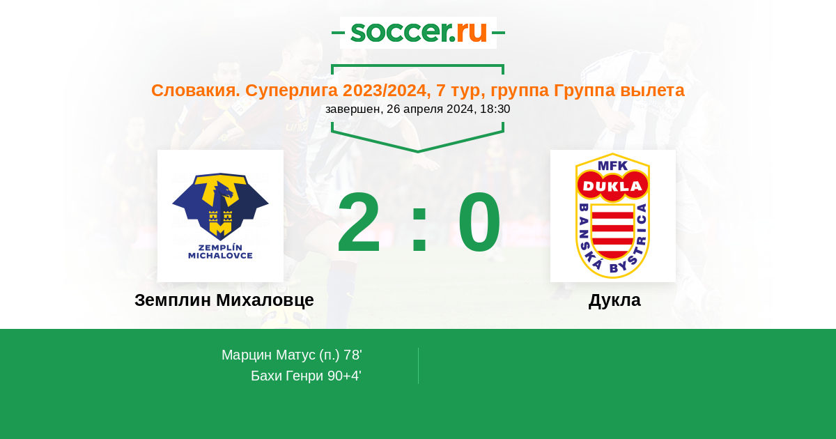 Протокол матча Земплин Михаловце против Дукла