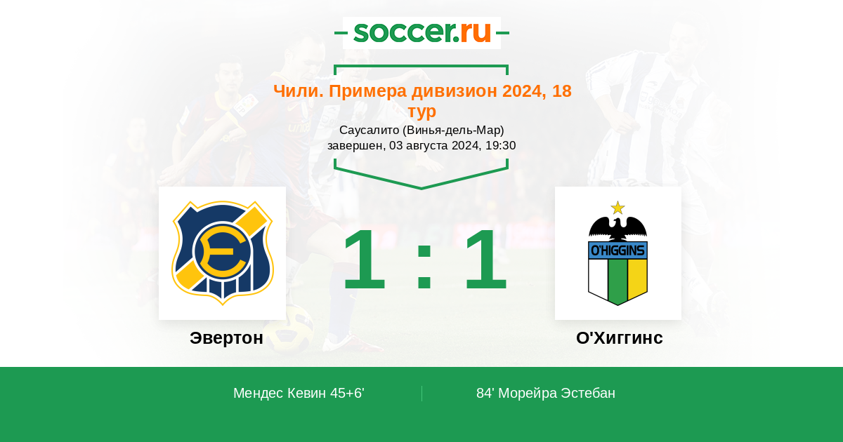 Протокол матча Эвертон против О'Хиггинс
