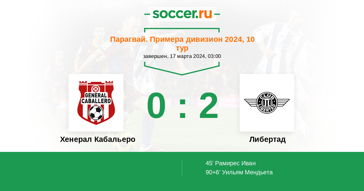 90+6' (0:2) Уильям Мендьета (11) (Санта Крус Роке (24))