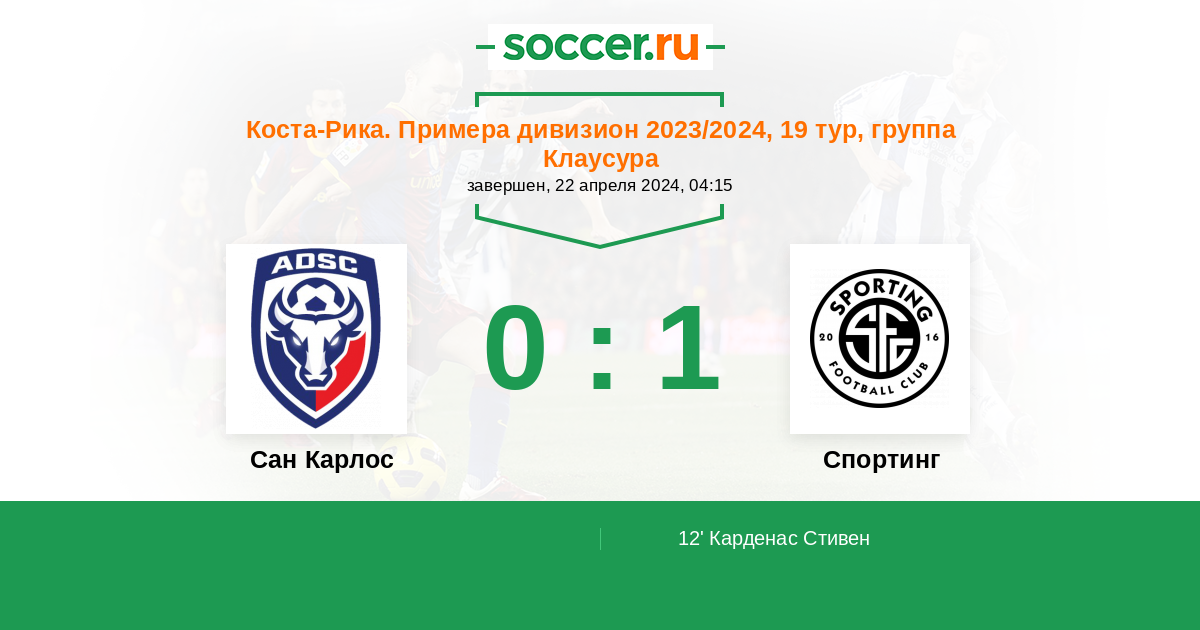Протокол матча Сан Карлос против Спортинг Сан-Хосе