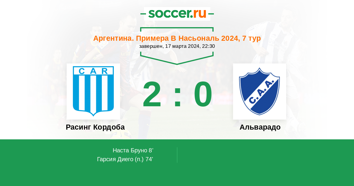 Протокол матча Расинг Кордоба против Альварадо