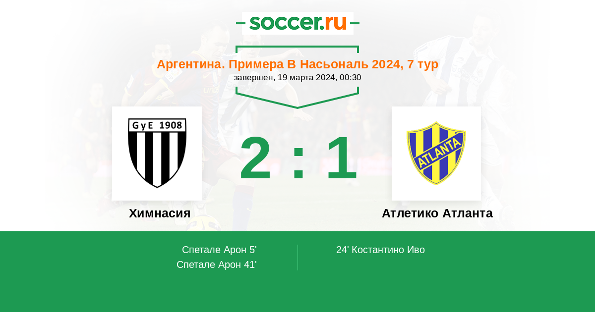 Протокол матча Химнасия против Атлетико Атланта