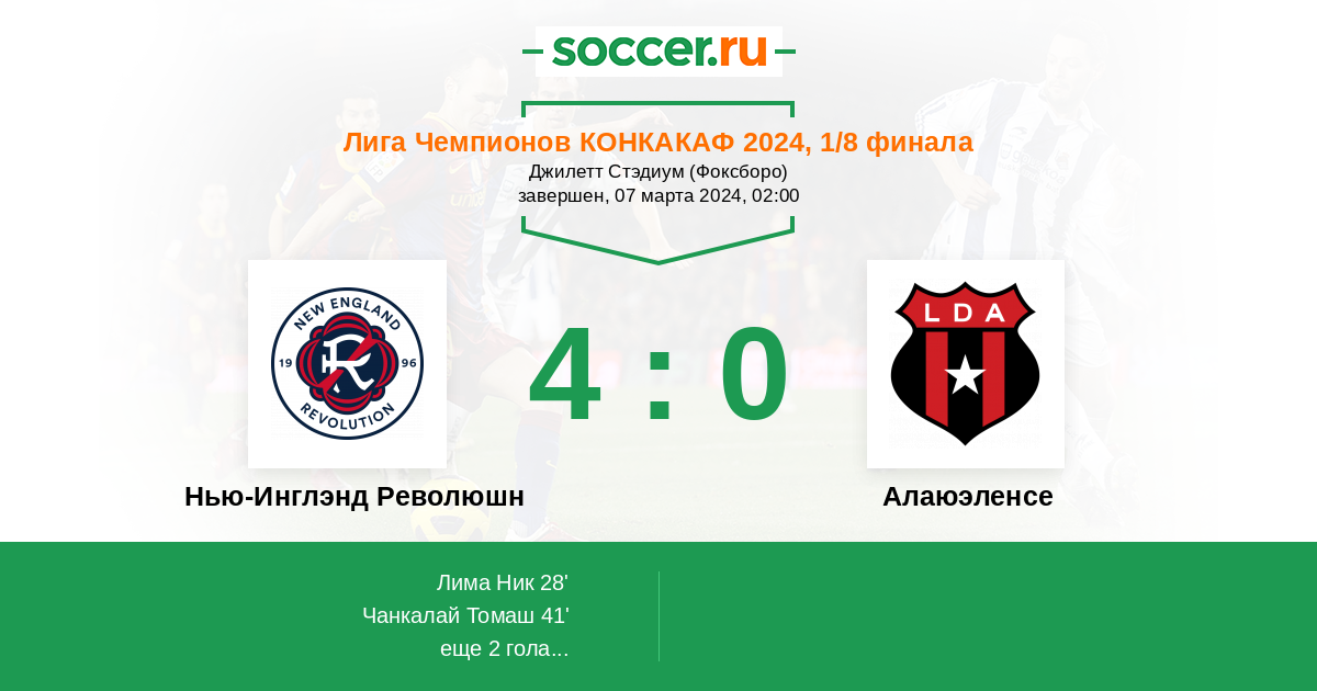 Протокол матча Нью-Инглэнд Революшн против Алаюэленсе