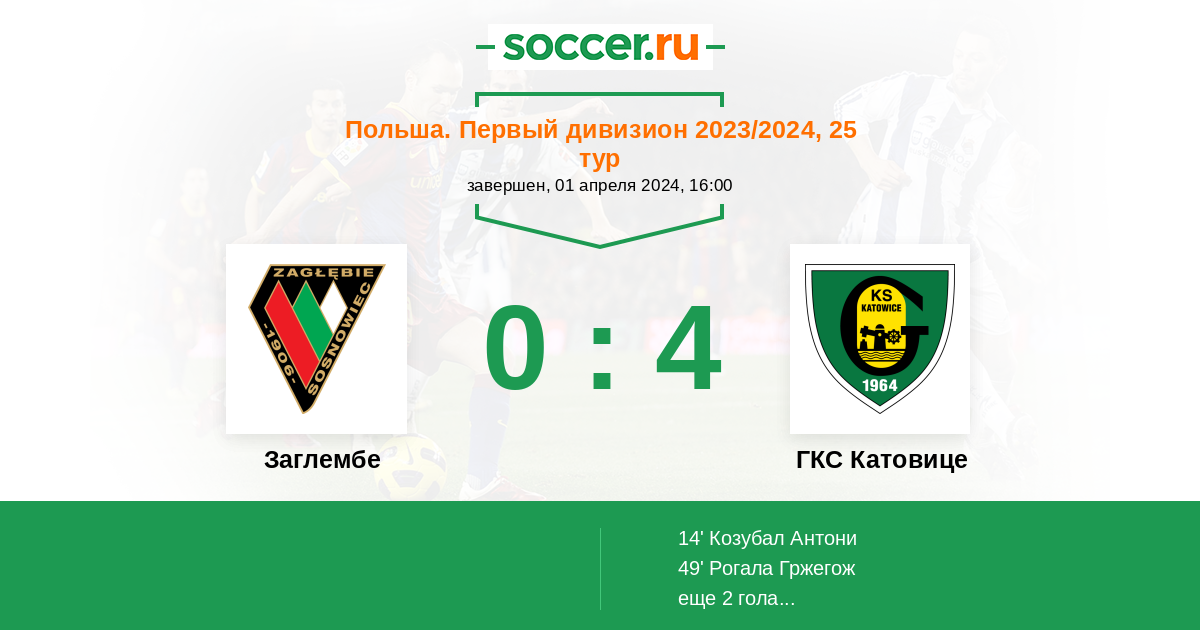 Протокол матча Заглембе против ГКС Катовице