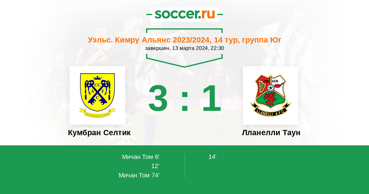 Протокол матча Кумбран Селтик против Лланелли Таун