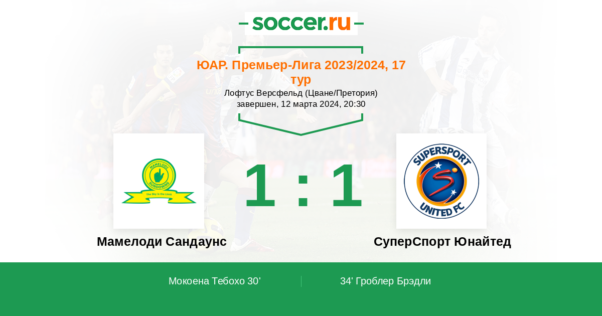 Протокол матча Мамелоди Сандаунс против СуперСпорт Юнайтед