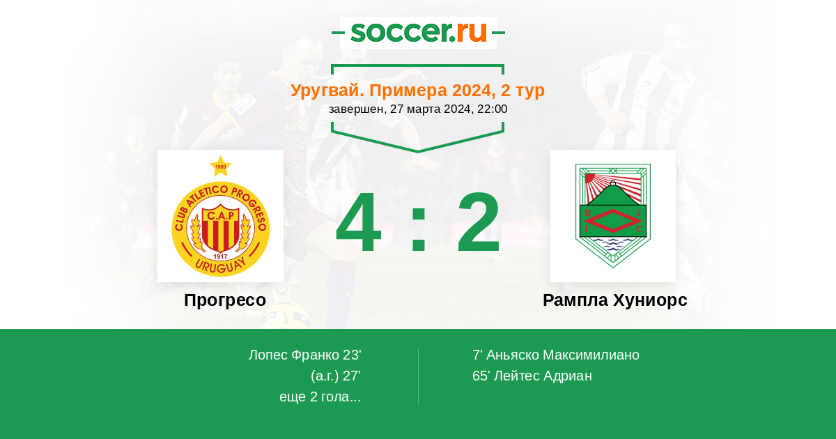Протокол матча Прогресо против Рампла Хуниорс