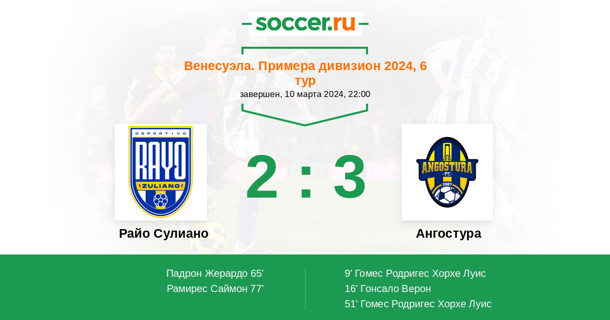 Протокол матча Райо Зулиано против Ангостура