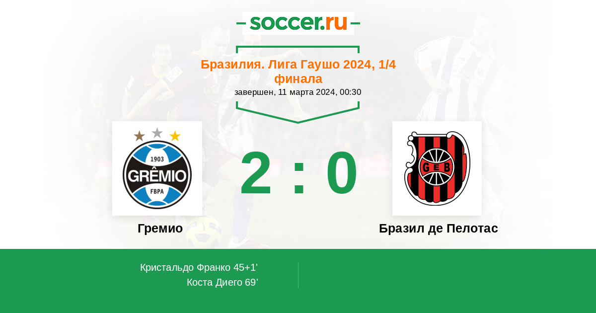 69' (2:0) Коста Диего (19) (Ду Кейрос (37))