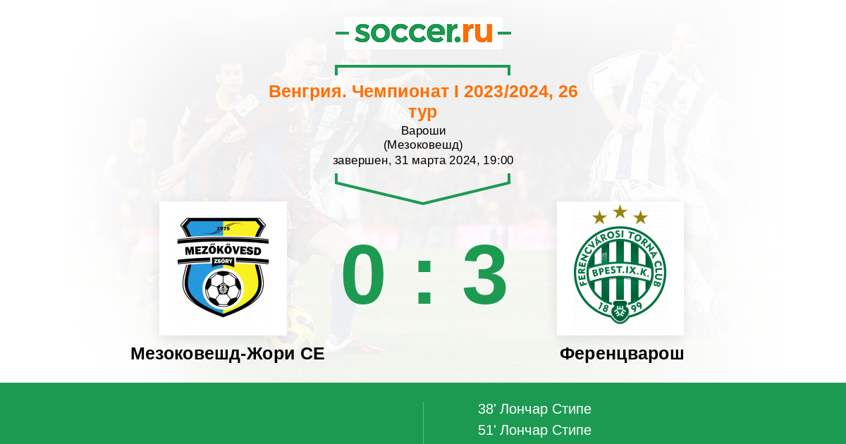 Протокол матча Мезоковешд-Жори СЕ против Ференцварош