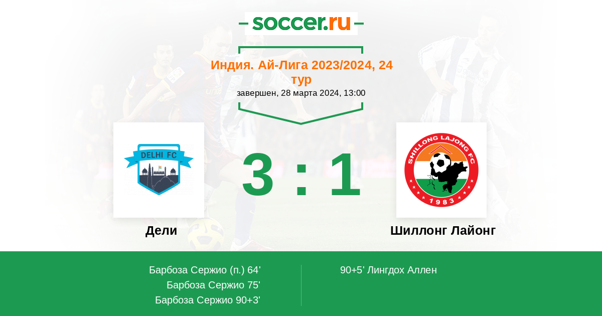 Протокол матча Дели против Шиллонг Лайонг