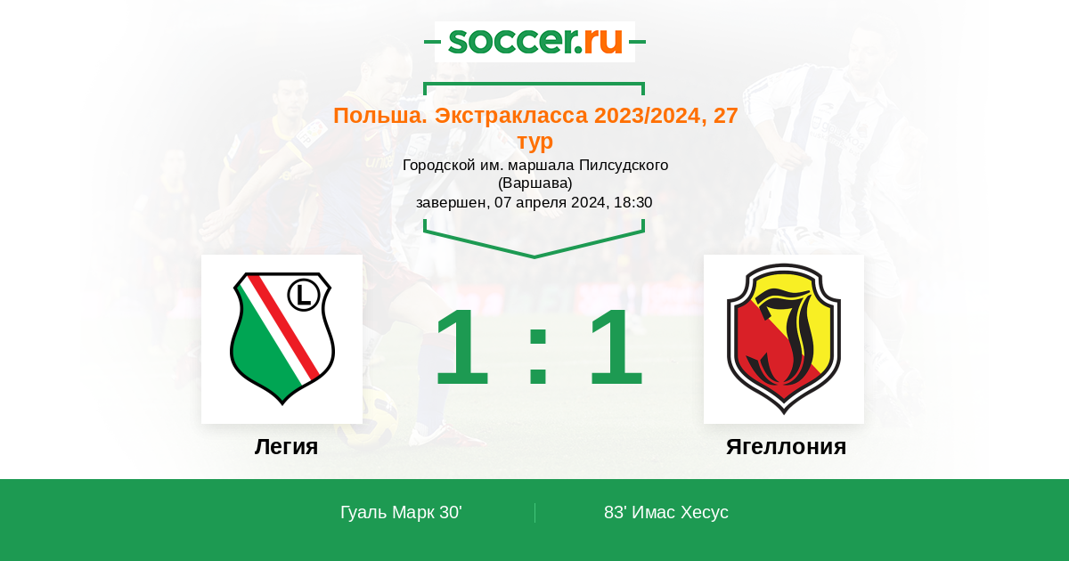 Протокол матча Легия против Ягеллония
