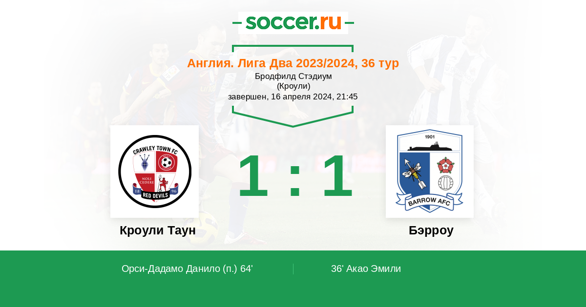Протокол матча Кроули Таун против Бэрроу
