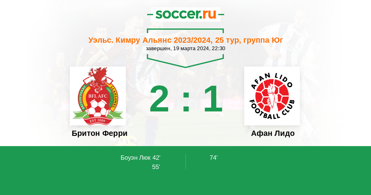 Протокол матча Бритон Ферри против Афан Лидо