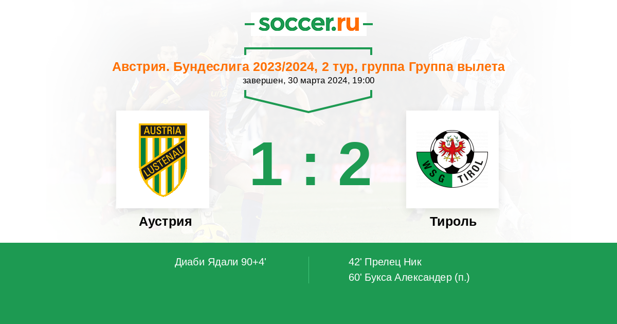 Протокол матча Аустрия против Тироль