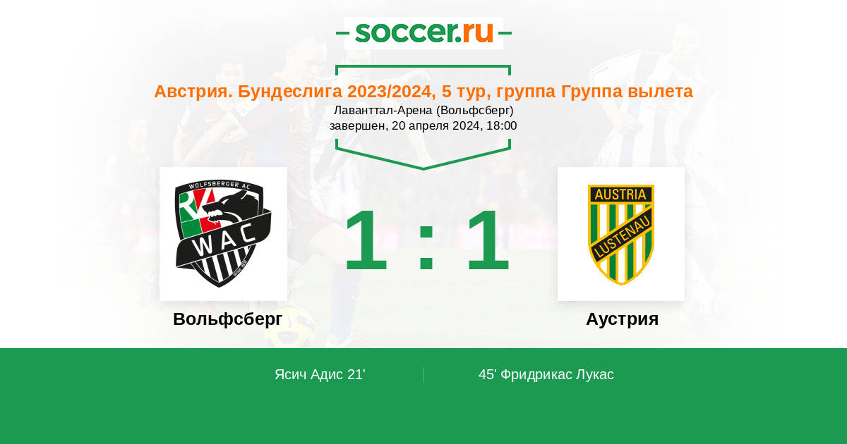 Протокол матча Вольфсберг против Аустрия