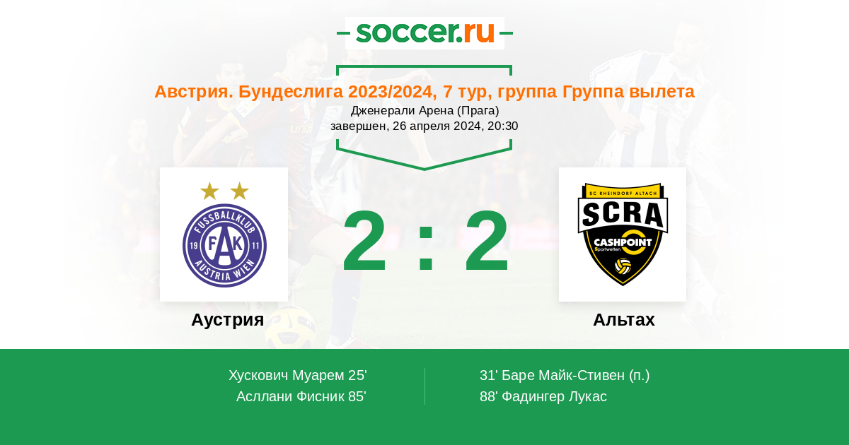 Протокол матча Аустрия против Альтах