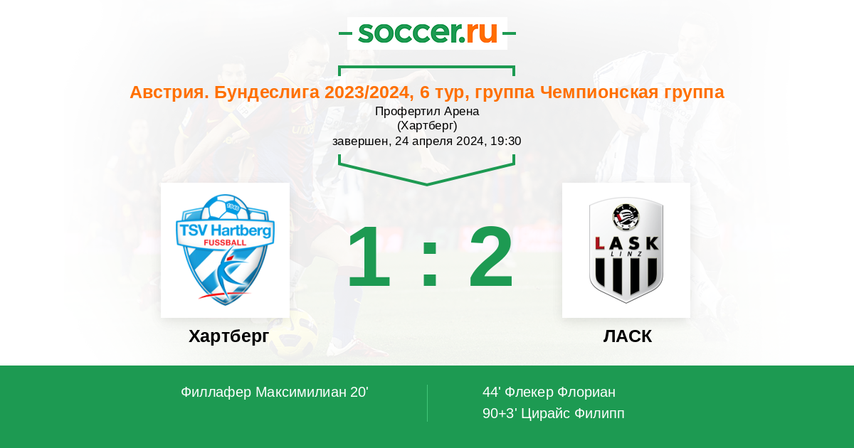 Протокол матча Хартберг против ЛАСК