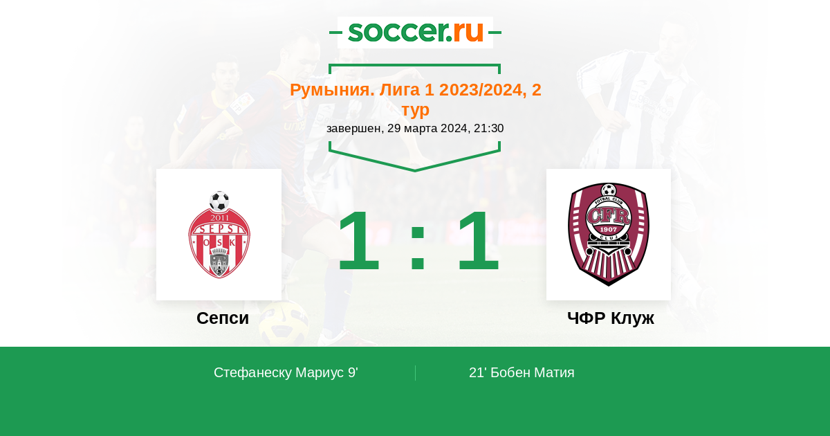 Протокол матча Сепси против ЧФР Клуж