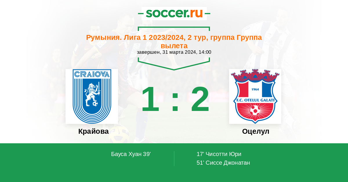39' (1:1) Бауса Хуан (10) (Альбу Константин (8))