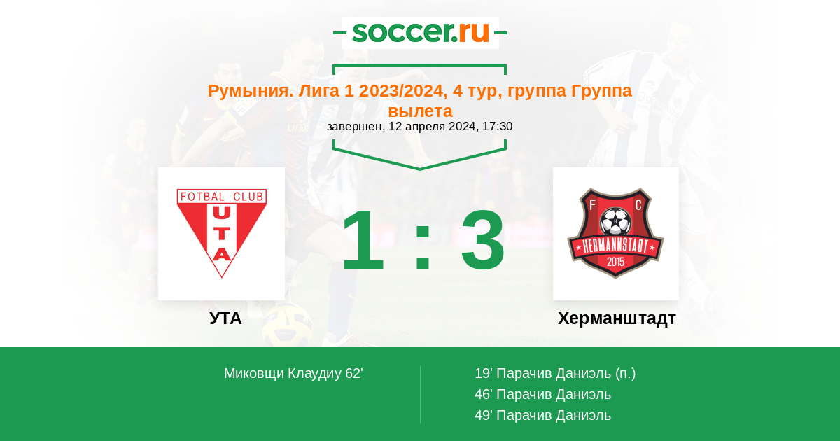 Протокол матча УТА против Херманштадт