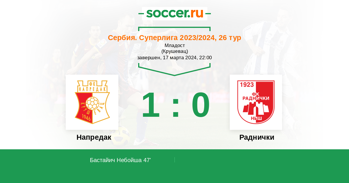 Протокол матча Напредак против Раднички