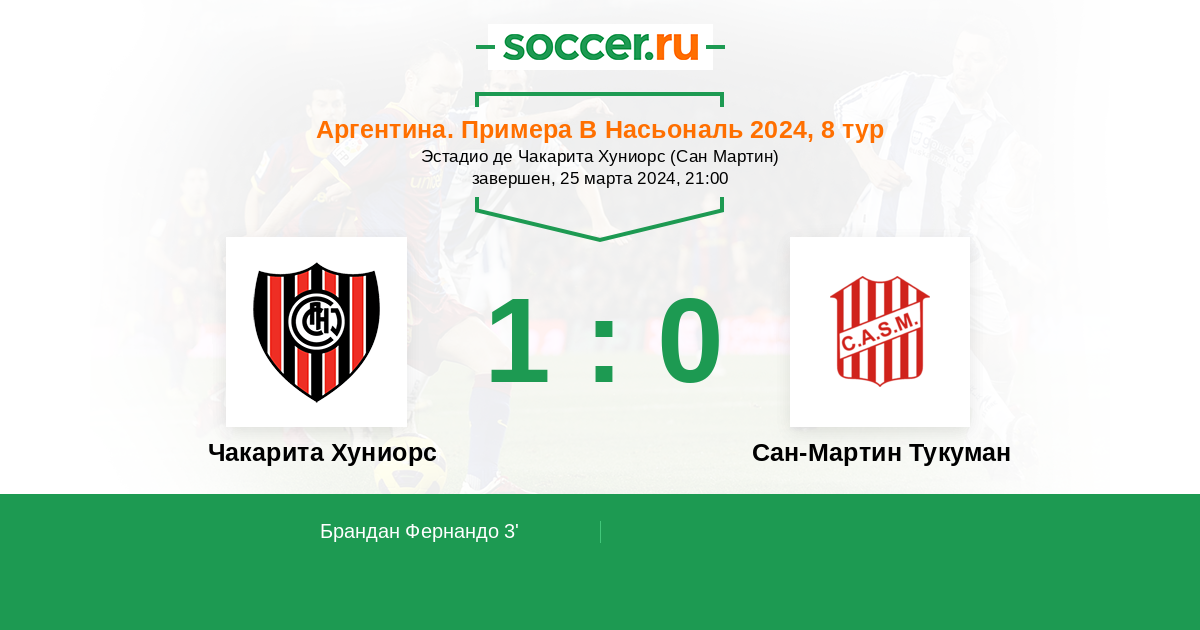 Протокол матча Чакарита Хуниорс против Сан-Мартин Тукуман