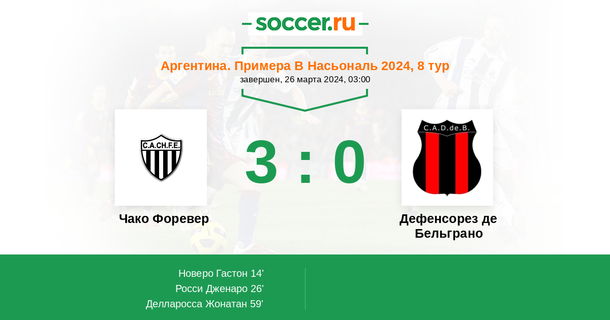 Протокол матча Чако Форевер против Дефенсорез де Бельграно
