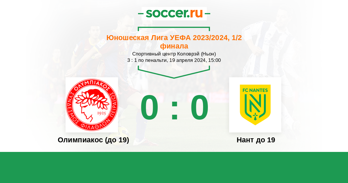 Протокол матча Олимпиакос (до 19) против Нант до 19