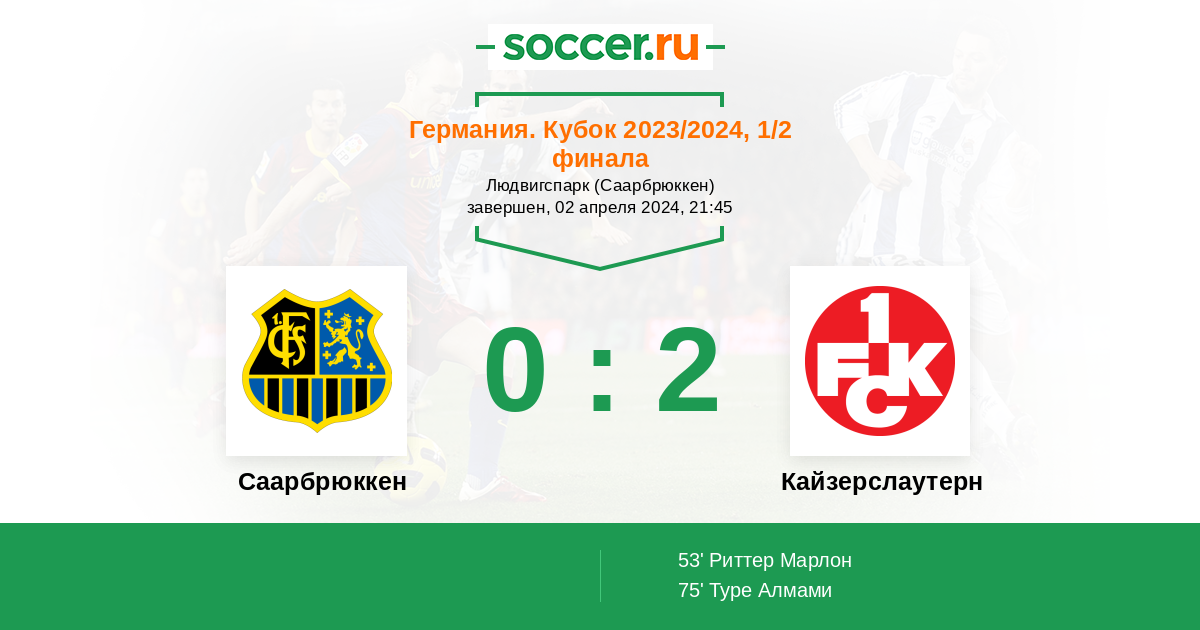 Протокол матча Саарбрюккен против Кайзерслаутерн