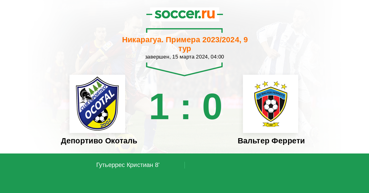 Протокол матча Депортиво Окоталь против Вальтер Феррети