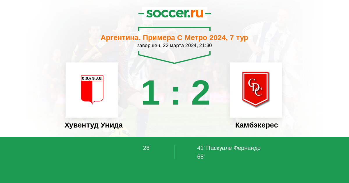 Протокол матча Хувентуд Унида против Камбэкерес