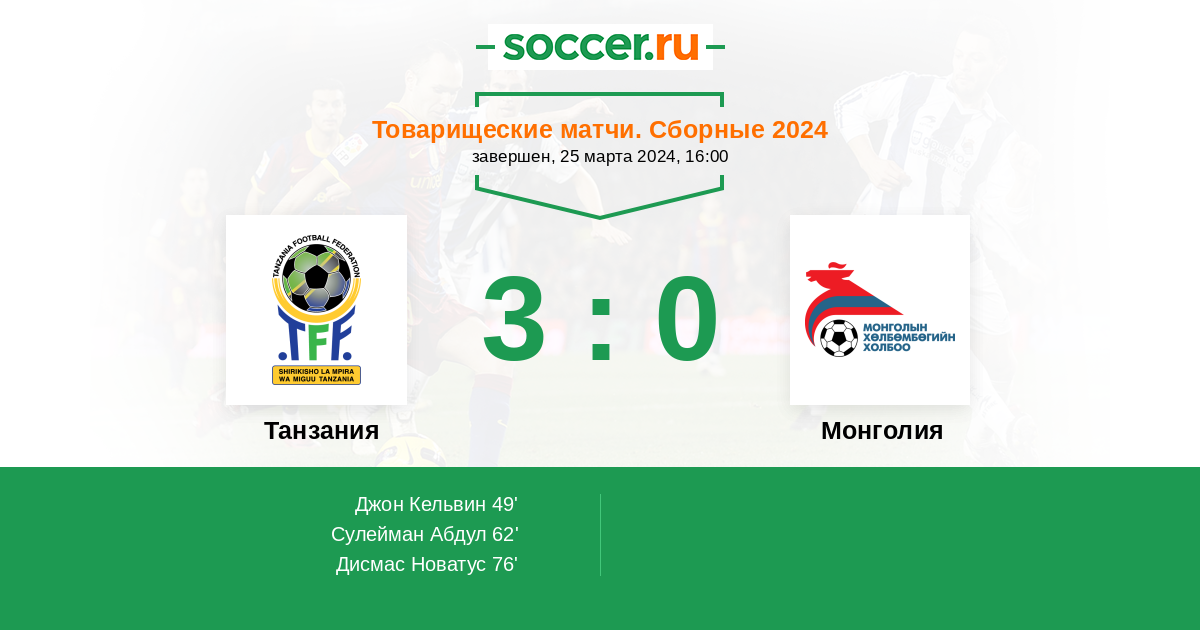Протокол матча Танзания против Монголия