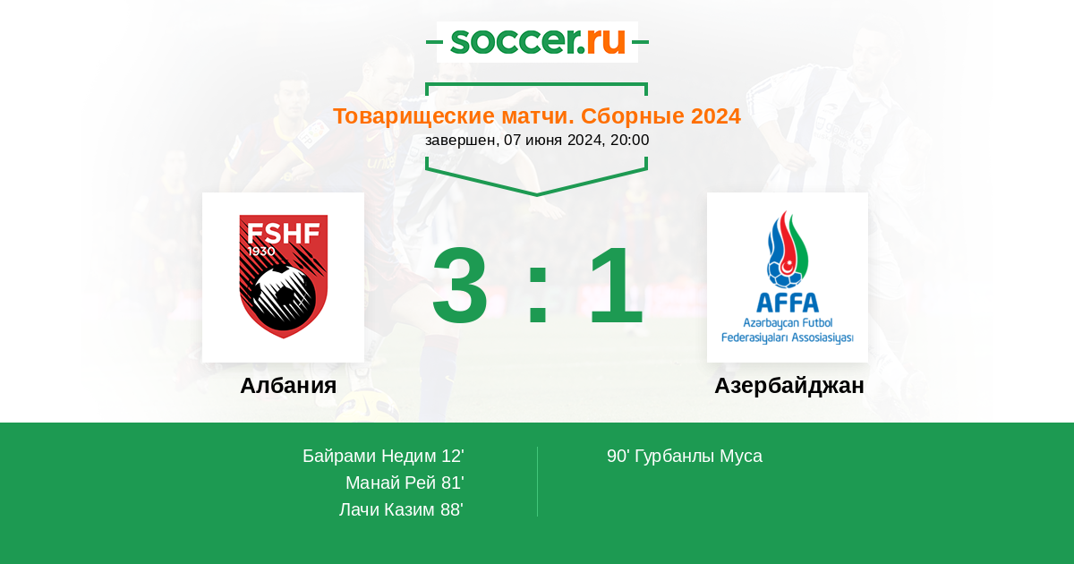 Протокол матча Албания против Азербайджан