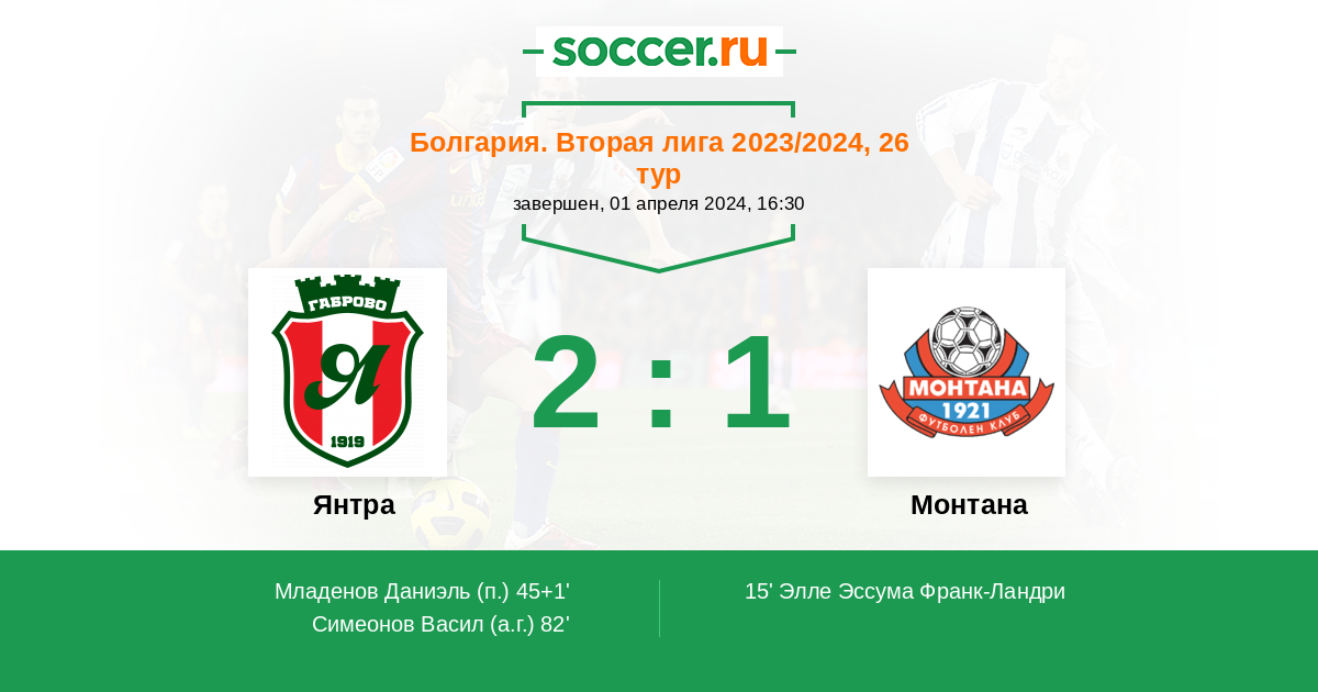Протокол матча Янтра против Монтана