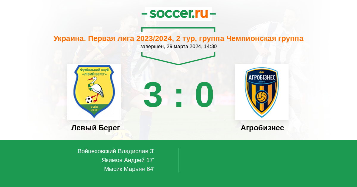 Протокол матча Левый Берег против Агробизнес