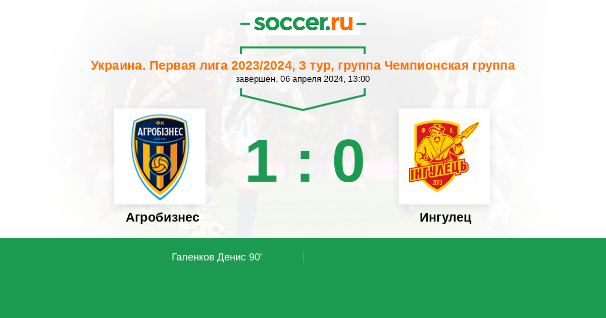 Протокол матча Агробизнес против Ингулец