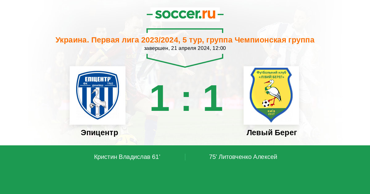 Протокол матча Эпицентр против Левый Берег