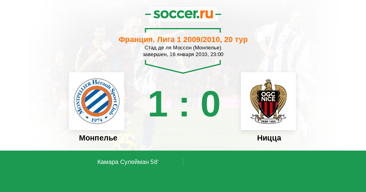 Протокол матча Монпелье против Ницца