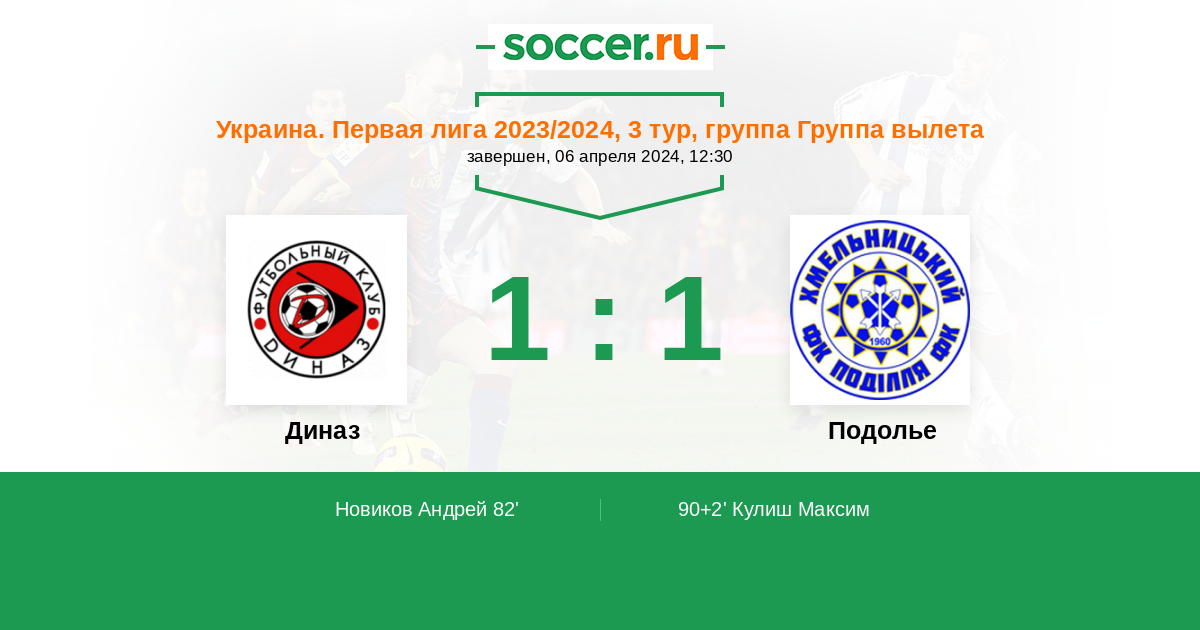 Протокол матча Диназ против Подолье