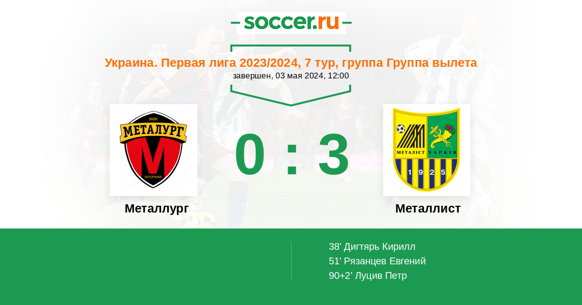Протокол матча Металлург против Металлист