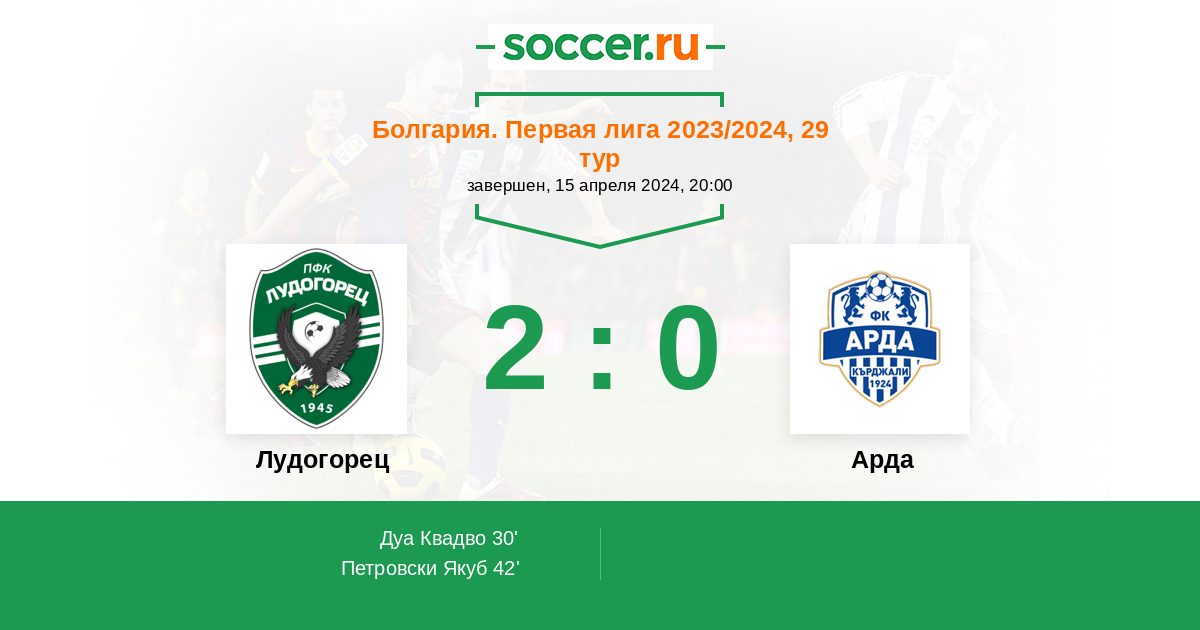 Протокол матча Лудогорец против Арда
