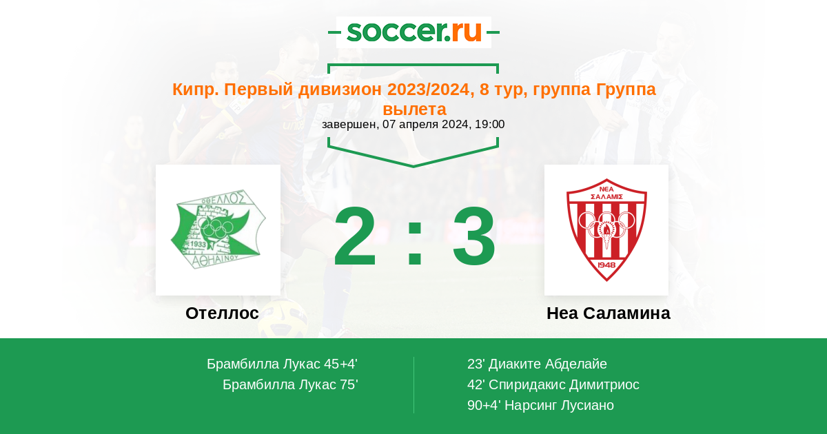Протокол матча Отеллос против Неа Саламина
