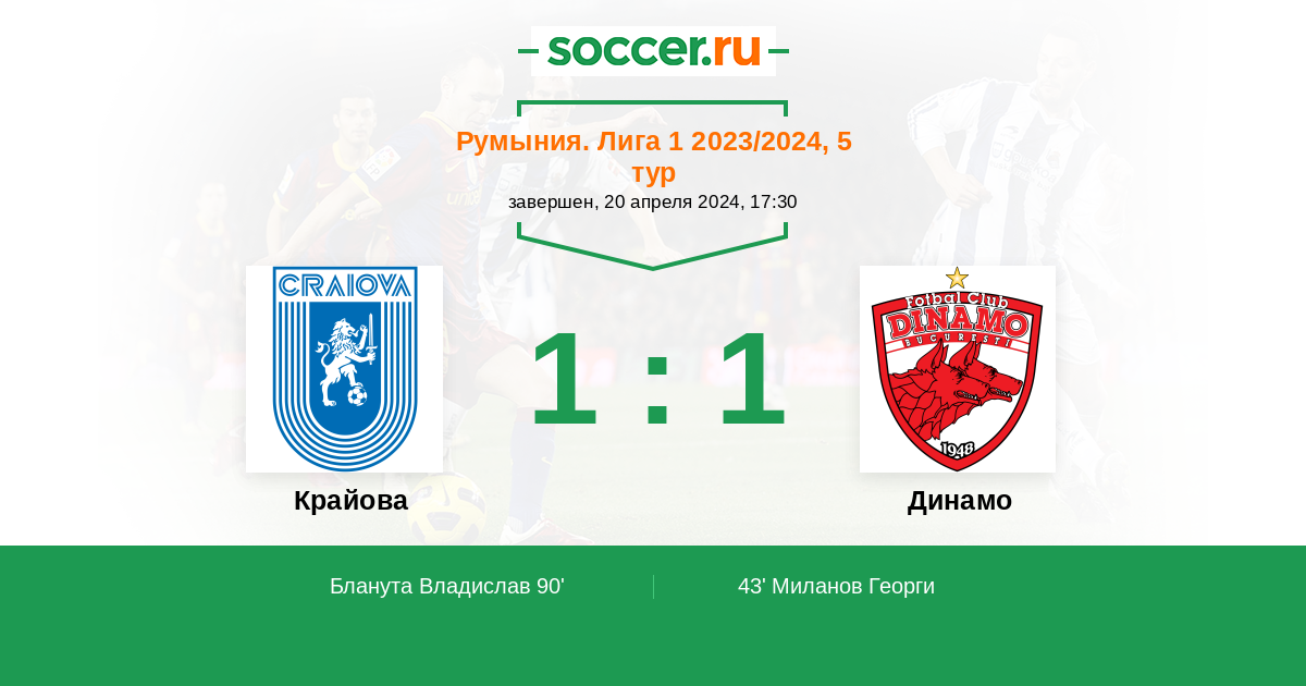 Протокол матча Крайова против Динамо