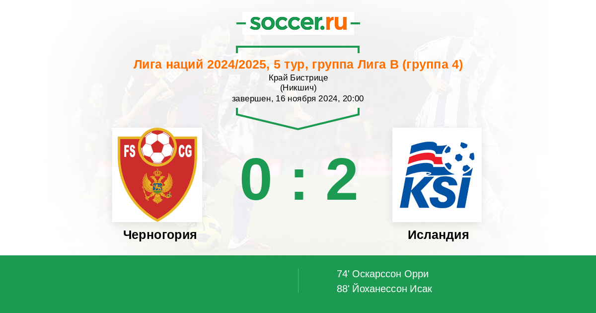 Гол74' (0:1) Оскарссон Орри (9) (Эллертссон Микаэль (23))