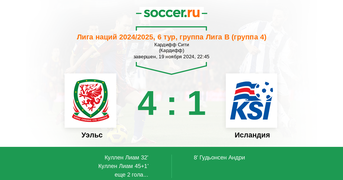 45+1' (2:1) Куллен Лиам (15) (Джеймс Даниэл (20))