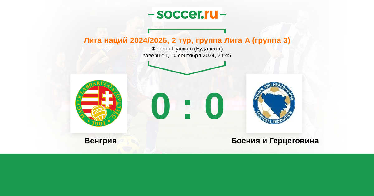 В предстоящем матче 2 - го тура Лиги Наций Лиги А в группе 3 между командами сборной Венгрии и сборной Боснии и Герцеговины , фаворитом на победу является команда хозяев сборная Венгрии.