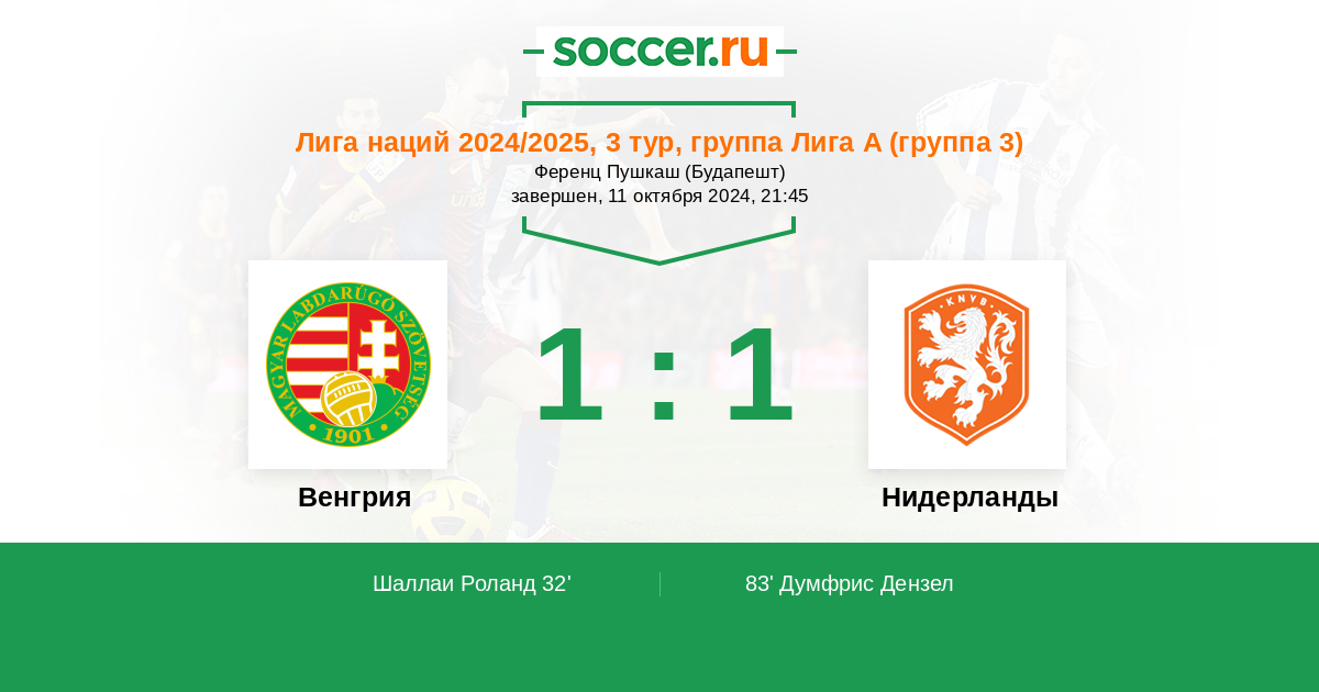 32' (1:0) Шаллаи Роланд (20) (Надь Жольт (18))