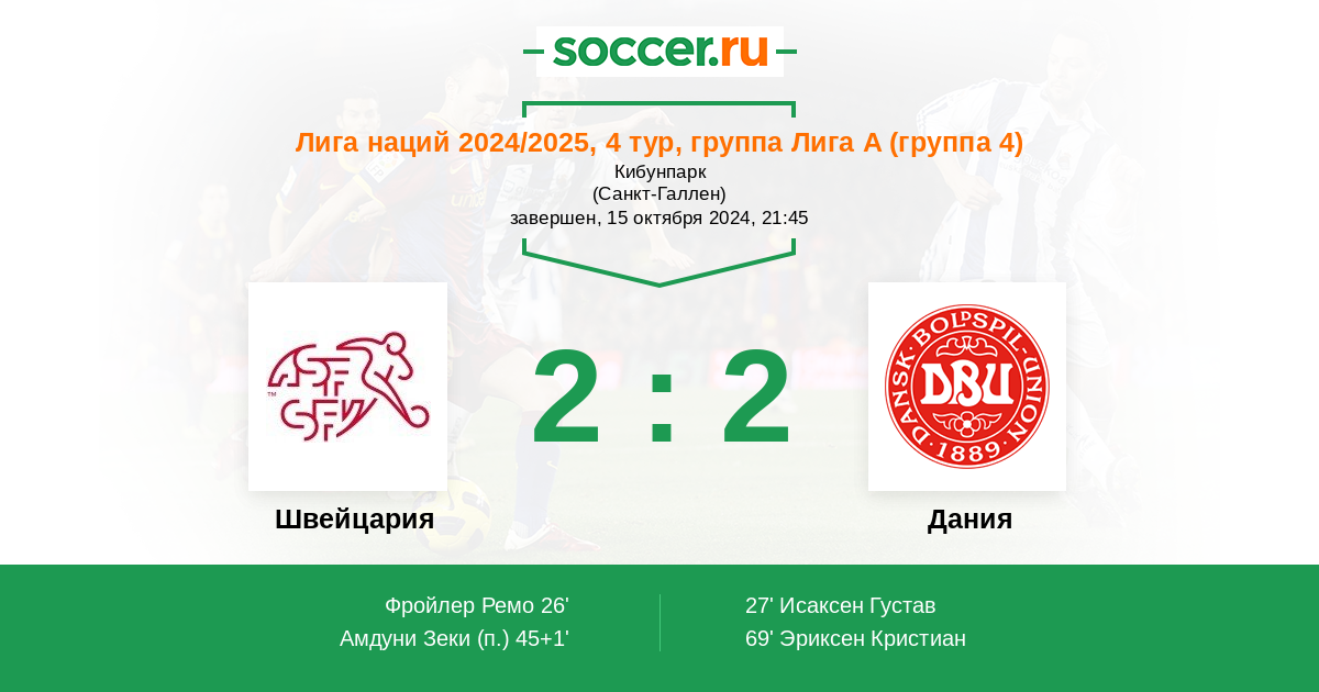 Протокол матча Швейцария против Дания