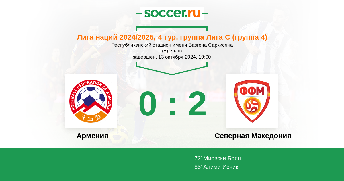 Протокол матча Армения против Северная Македония